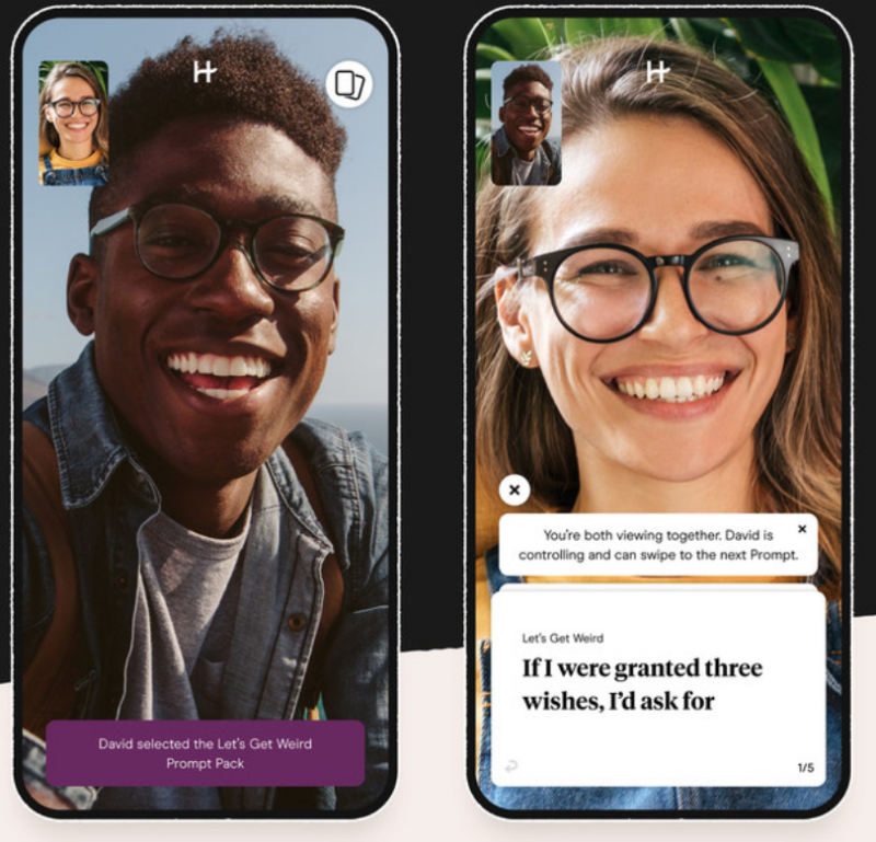 PR NEWSWIRE – Apr 13 – The top reason why a majority (58%) of people still don't go on virtual dates is because they think it will feel too awkward. Two out of three users believe that icebreakers would help ease any awkwardness while on a video date, so Hinge launched Video Prompts. Video Prompts will show conversation starters on screen that encourage daters to share their interests and personalities. Users select from one of eight unique conversation themes, and once a theme is picked, the collection includes five Prompts for users to ask each other.