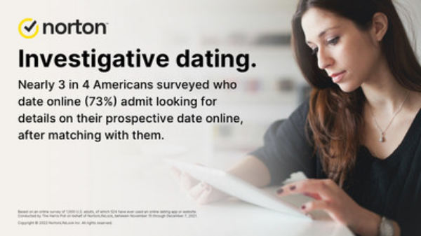 PR NEWSWIRE – Study shows 73% vetted their matches in some form, and half of online daters admit to un-matching someone based on what they found. Norton (and Harris), today published a global study (1k US adults) on dating behavior. The most common tactics for vetting are social media profiles (49%), and typing a name into a search engine (37%). 14% admit to paying for a check on their match.