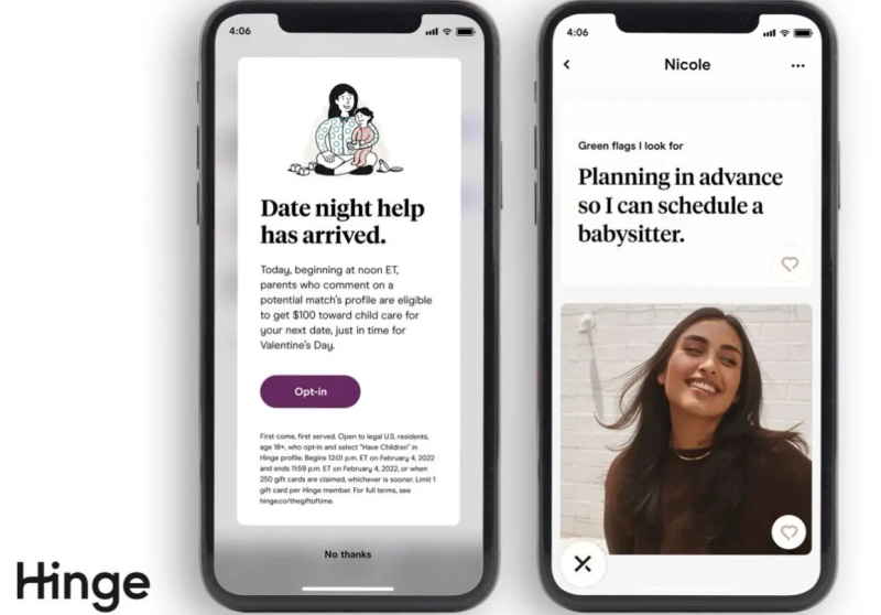 FOX BUSINESS – Hinge launches Valentine's Day campaign to help parents pay for babysitters. Starting on Friday, Feb. 4, users will receive an opt-in notification for the holiday campaign at noon EST. Eligible users who have children and enable the campaign will get a chance at earning a $100 child care gift card if they comment on a potential match's profile. Hinge plans to give away up to $25K in gift card stipends.